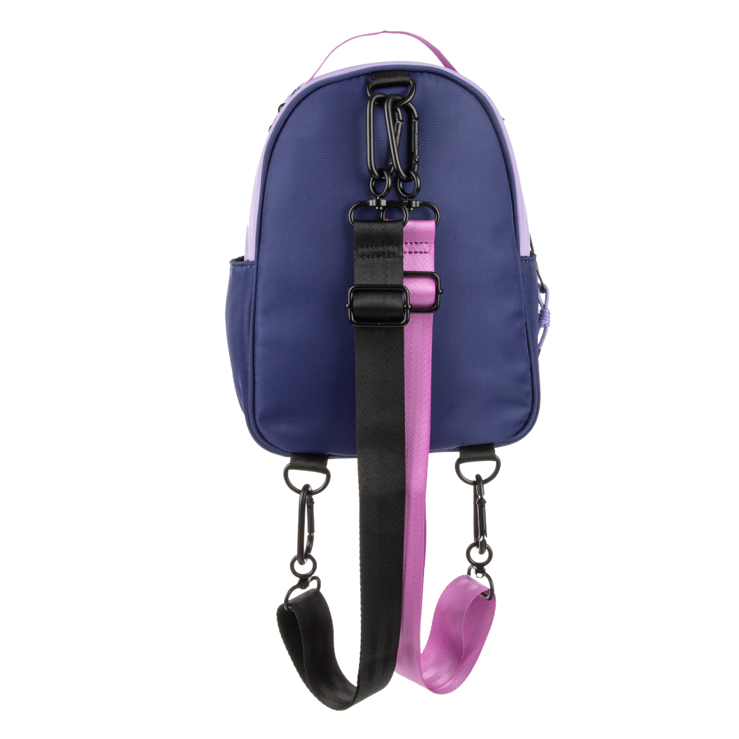 Mini convertible backpack with 2 webbed straps to wear as a backpack or crossbody bag